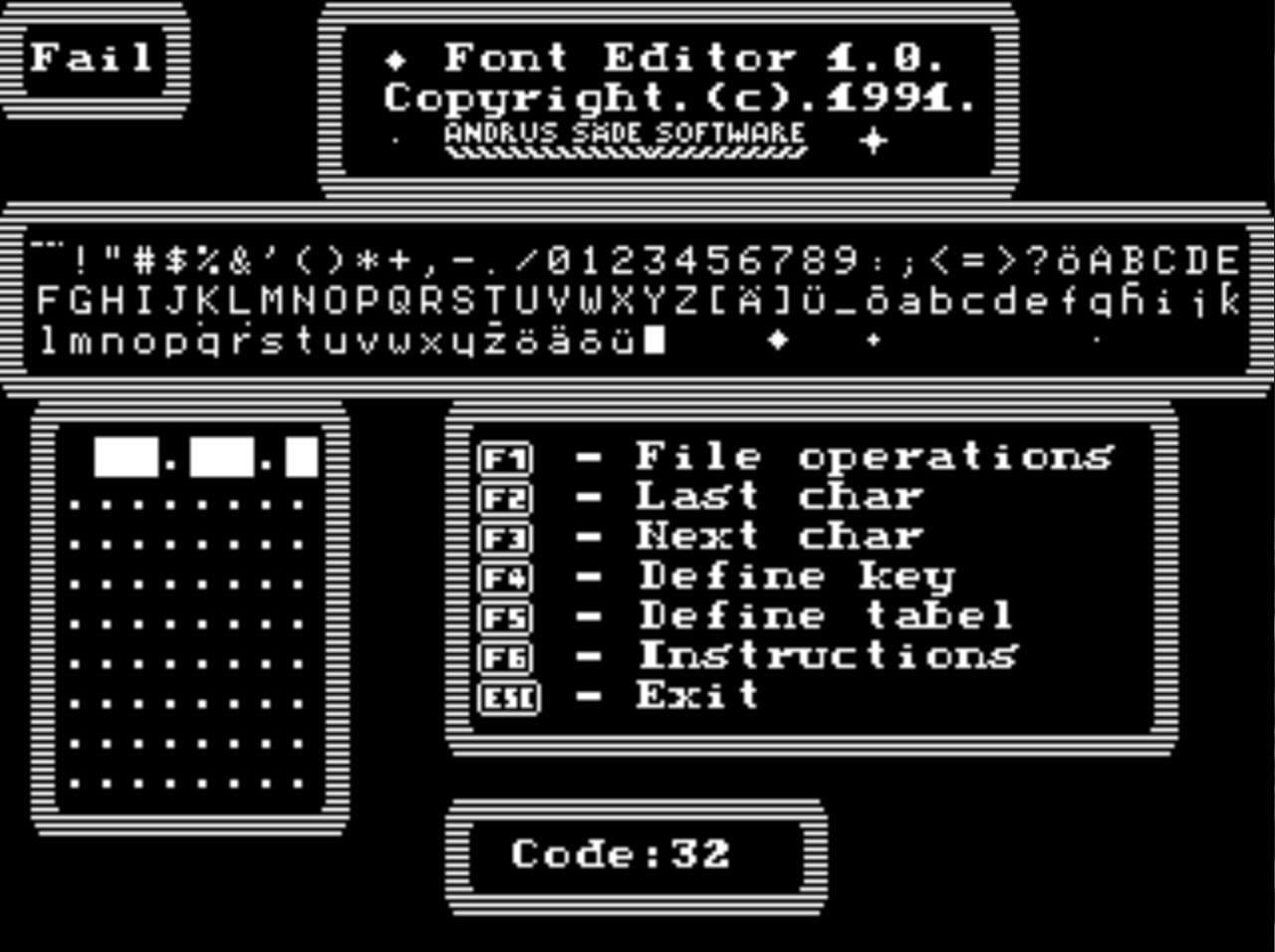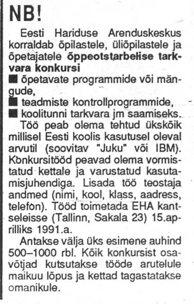 Rakendustarkvara FONT EDITORi programmers Andrus Säde 1991 aastal, et osaleda15.aprillil.1991 Sakala 23, Tallinn aset leidnud Eesti Hariduse arenduskeskuse poolt korraldatud õppeotstarbelise tarkvara konkursil.