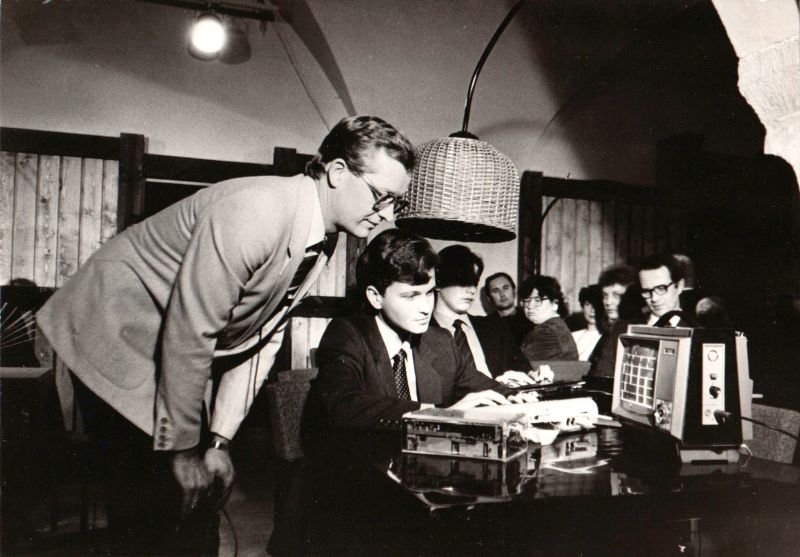 Priit Humal demonstreerimas telesaates Reklaamiklubi TARTU arvutil enda programmeeritud arvutimängu "Paanika", 25 novembril 1985